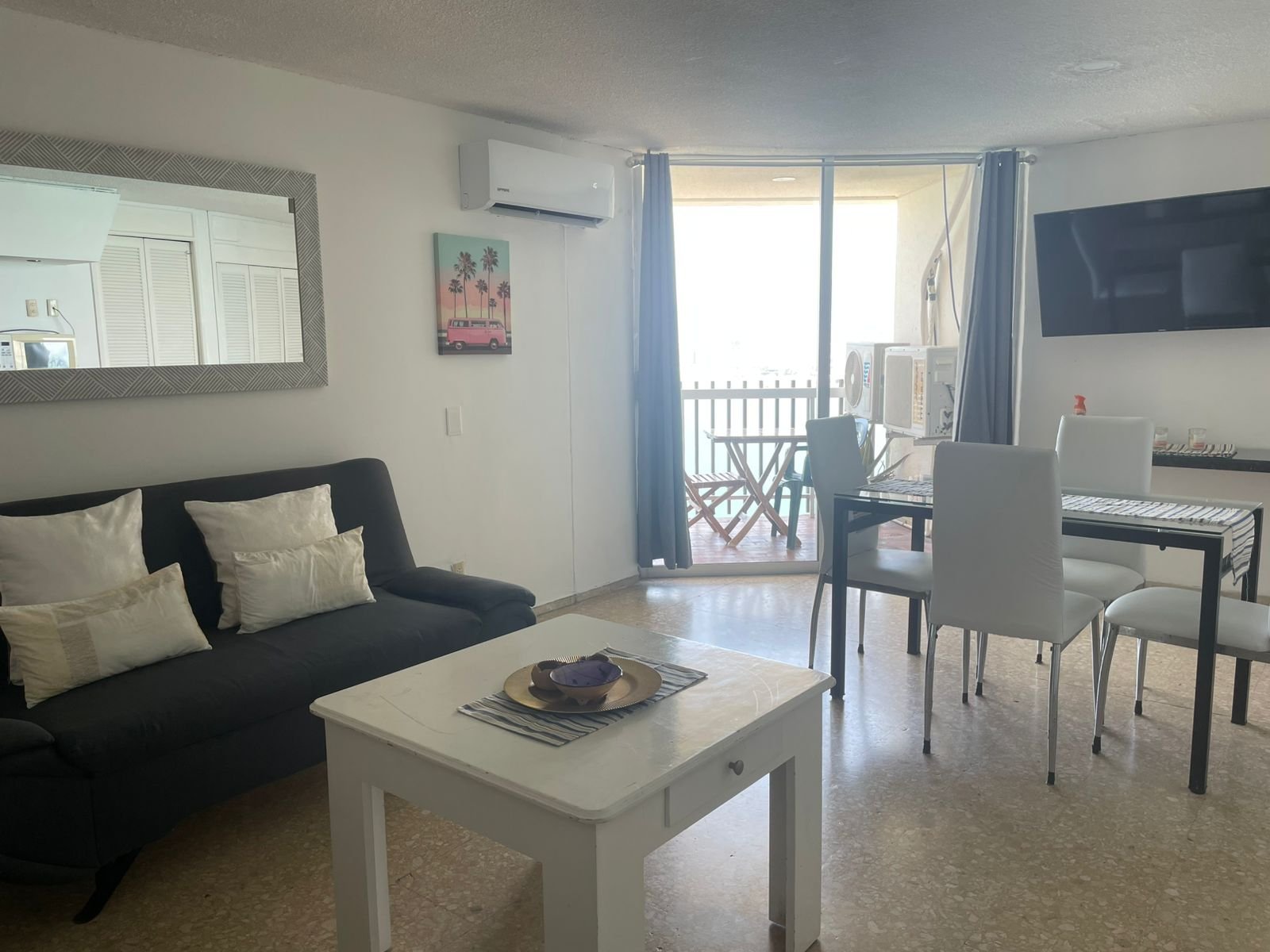 El departamento tiene vista a la bahía de lado de la costera, cuenta con sala comedor, cocina, 1 recamara.
