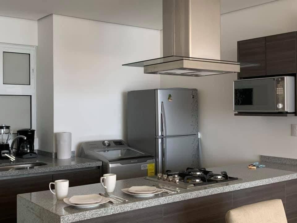 Dispone de 2 recámaras con clóset y baño completo, sala–comedor, cocina integral equipada, aires acondicionados, calentador de agua y bodega privada de 3 m².